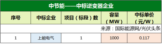 上能電氣最低價中標(biāo)項目為國家電投逆變器集采1500V 集中式2標(biāo)段,該項目招標(biāo)容量1000MW,上能電氣中標(biāo)單價為0.117元/W。