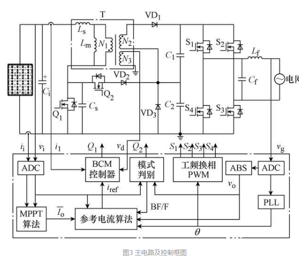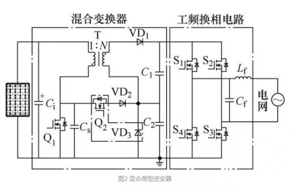 升壓-反激變換器還提供了固有的無損吸收電路,使變壓器的漏感能量得以利用,并實現(xiàn)了主開關(guān)管關(guān)斷電壓尖峰的鉗位。上述特性使混合逆變器具有比傳統(tǒng)的反激逆變器更小的變壓器體積和更高的變換器效率。文中介紹了其工作原理,同時,推導了一種參考電流數(shù)學公式,以保證高的并網(wǎng)電流質(zhì)量。