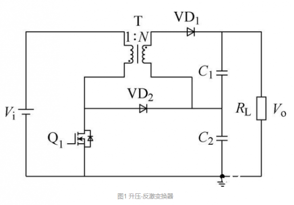 升壓-反激變換器如圖1所示,相比傳統(tǒng)的反激變換器,同樣降低了變壓器匝比和漏感量,并且存在固有的無損吸收電路而無需外加電路元件。有學者將升壓-反激變換器應(yīng)用于基于直流母線結(jié)構(gòu)的微型逆變器,盡管該電路拓撲不具有隔離功能,但可效仿傳統(tǒng)的非隔離組串式或集中式逆變器,通過增加兩個繼電器來滿足安規(guī)要求。然而,升壓-反激變換器不適用于基于虛擬直流母線結(jié)構(gòu)的微型逆變器,原因在于其不具有降壓功能。