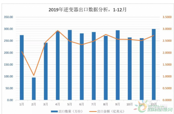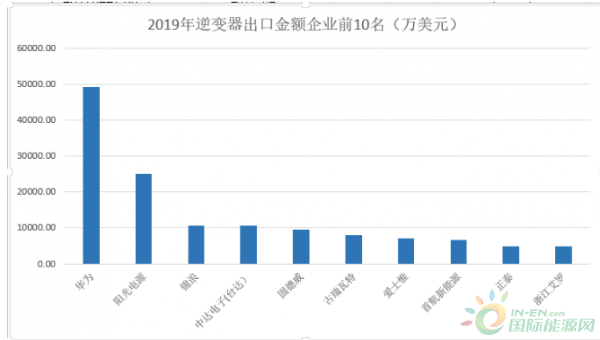 近日,2019年全年的海關數據已出爐,根據統計,2019年全年,中國的逆變器出口量約為3155.47萬臺,出口總金額達到了近29億美元(含光伏、風電、汽車電源等),前20家光伏逆變器公司的出口金額超過了總出口額的50%,約為15.42億美元。其中華為、陽光,錦浪,臺達,固德威位列2019年出口逆變器企業前五名。