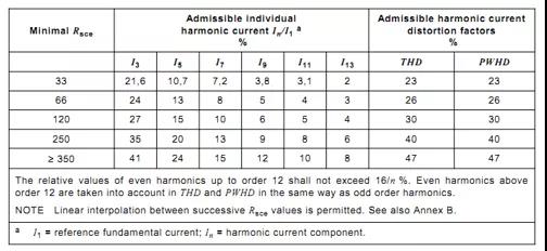 當逆變器的額定電流I≤16A時,根據IEC61000-3-2標準,各次諧波電流的限值如下表所示: