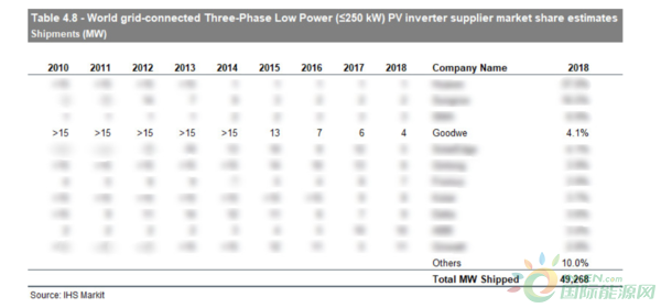 2018年固德威在全球市場取得了不俗業績,國際影響力與日俱增。據權威調研機構IHS最新發布的光伏逆變器市場數據中顯示,固德威三相光伏逆變器出貨量激增,銷量突破2GW,全球排名名列前茅。這跟固德威近年持續不斷推出工商業系統解決方案,持續發力工商業分布式和大型光伏電站密切相關。
