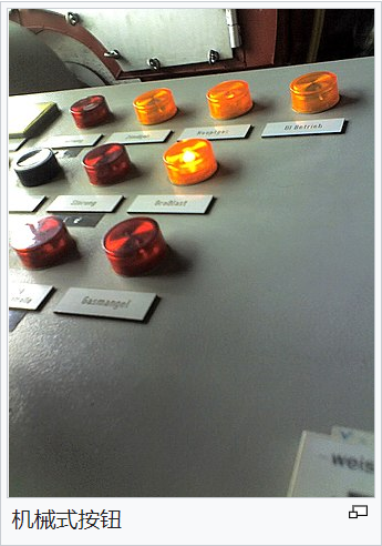 按鈕也稱為按鍵,是一種電閘(switch,或稱開關(guān)),用來控制機械或程序的某些功能。一般而言,紅色按鈕是用來使某一功能停止,而綠色按鈕,則通常可開始某一項功能。按鈕的形狀通常是圓形或方形。