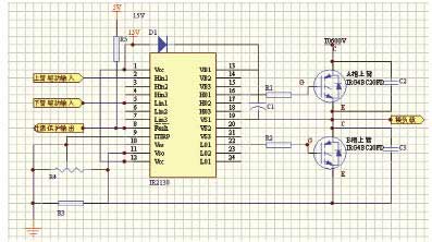 圖3 IR2130驅(qū)動(dòng)其中1個(gè)橋臂的電路原理圖