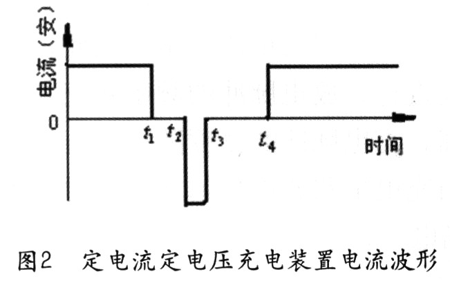 地方上已有這種充電設備,其工作過程是三相交流電源經接觸器、變壓器及可控硅充電開關對蓄電池充電。待蓄電池電壓達到出氣點電壓時,經過電壓傳感器檢測并發出信號。此信號使充、放電狀態控制器轉為停止充電狀態,并發出三個控制信號。第一個控制信號是關斷充電脈沖發生器的信號。第二控制信號是開始去極化信號,它經過放電前停止充電延時電路延時(t1-t2)后,發出放電開始脈沖,打開放電開關,蓄電池開始向放電電阻放電并經過放電延時電路延時(t2- t3)后,發出放電關脈沖,結束放電。依次重復進行充放電過程,直至充電結束。第三個控制信號送給開始放電計時器,使其從第一次去極化放電開始計時,到預定的時間后結束充電,自動關機。用這種方法充電,蓄電池的充電和放電電流波形如圖2所示。上述兩種方法是蓄電池充電方法的改進方向。我國采用的快速充電方案很多,性能差異很大。各種充電方法對蓄電池的壽命影響也大不相同。這兩種方法在理論上比較適合對蓄電池充電的要求。