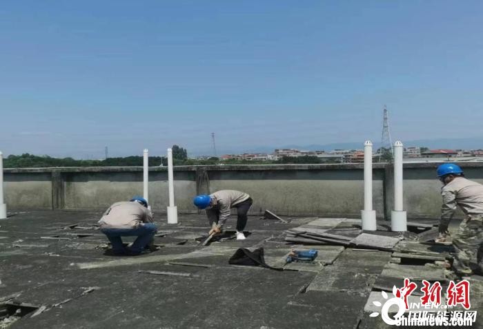 施工隊正在福建高速龍掘東服務(wù)區(qū)屋頂施工作業(yè)。